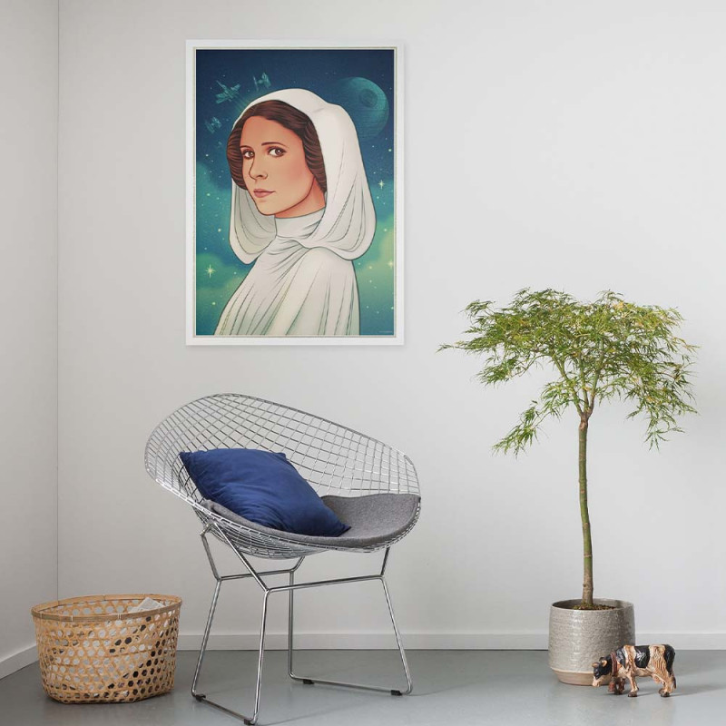 Craquez pour le poster Princesse Leia Star Wars bleu en format 40 x 50 cm. Ce tableau met en lumière Leia Organa, la...