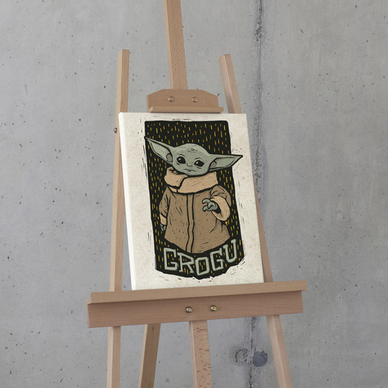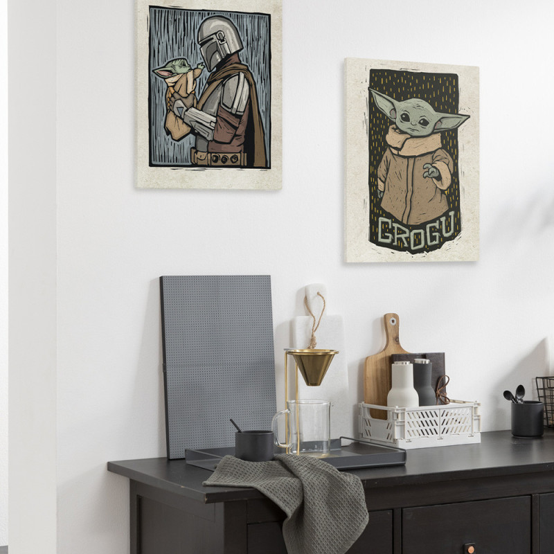 Toile sur cadre Mandalorian avec Grogu vert 30 x 40 cm