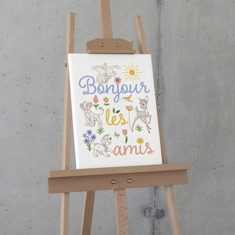Voici la toile sur cadre intissée « Animaux Bonjour les Amis » bleu, au format 30 x 40 cm, idéale pour apporter une touche de douceur et de convivialité à la chambre des enfants. Ce cadre charmant met en scène une joyeuse bande d’animaux colorés sur un fond bleu apaisant, invitant à la découverte. Sa taille compacte permet de décorer facilement n’importe quel mur tout en insufflant une ambiance chaleureuse et ludique. Une décoration parfaite pour créer un espace accueillant et joyeux pour les plus petits.