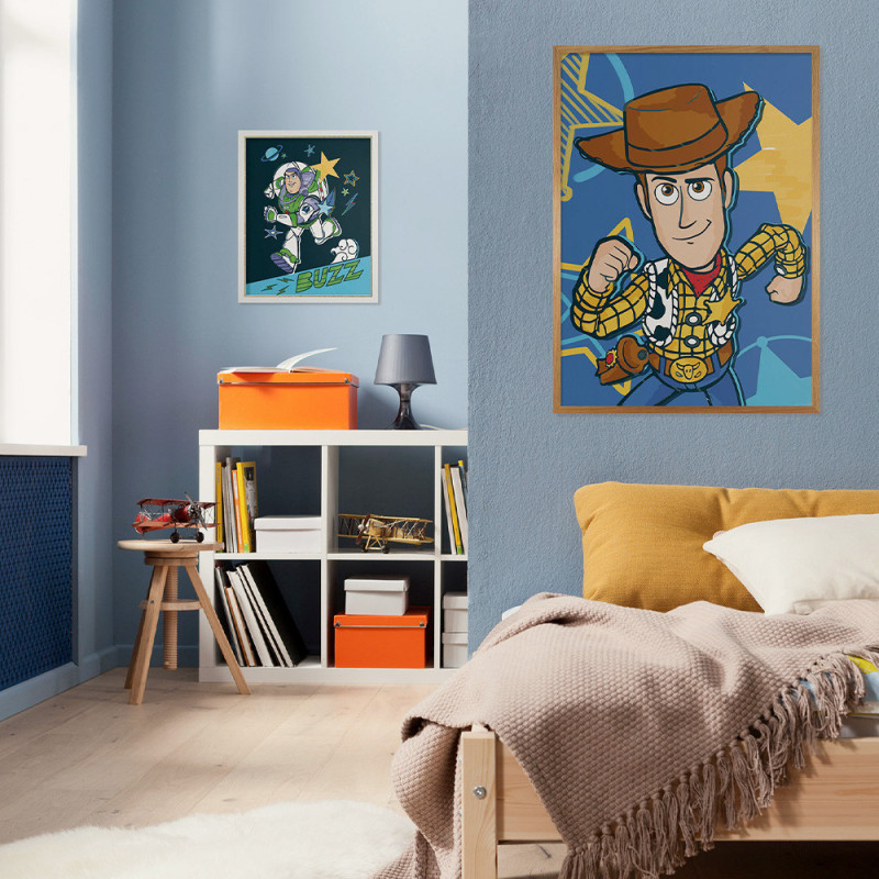 Apportez une touche d’aventure et de fun à la chambre de votre enfant avec ce poster Woody Toy Story bleu 30 x 40 cm, mettant en scène le célèbre shérif dans un design dynamique et coloré. Sur un fond bleu vif, ce visuel capture parfaitement l’esprit joyeux et courageux de Woody, héros incontournable de la saga Pixar. Imprimé sur papier de haute qualité, ce format compact est parfait pour décorer un mur seul ou en association avec d’autres posters Toy Story. Facile à encadrer ou à accrocher, ce poster apporte une ambiance ludique et chaleureuse à tout espace enfantin, idéal pour les petits fans de l’univers Toy Story.