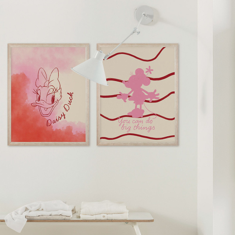 Poster Minnie rose 40 x 50 cm, idéal pour décorer une chambre d’enfant avec une touche Disney. Le visuel met en scène Minnie dans un design graphique sur fond rose, adapté à une déco féminine, pastel ou moderne. Format polyvalent, à encadrer seul ou à intégrer dans une composition murale. Optez pour une décoration rapide et facile à poser !