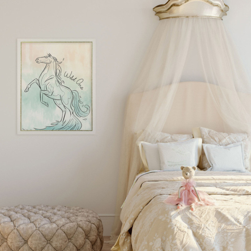 Ce poster du cheval magique de la Reine des Neiges, dans des tons bleus apaisants, apporte une touche féerique à la déco. Son format 30 x 40 cm est idéal pour habiller un mur sans l’encombrer, que ce soit dans une chambre ou un coin lecture.
