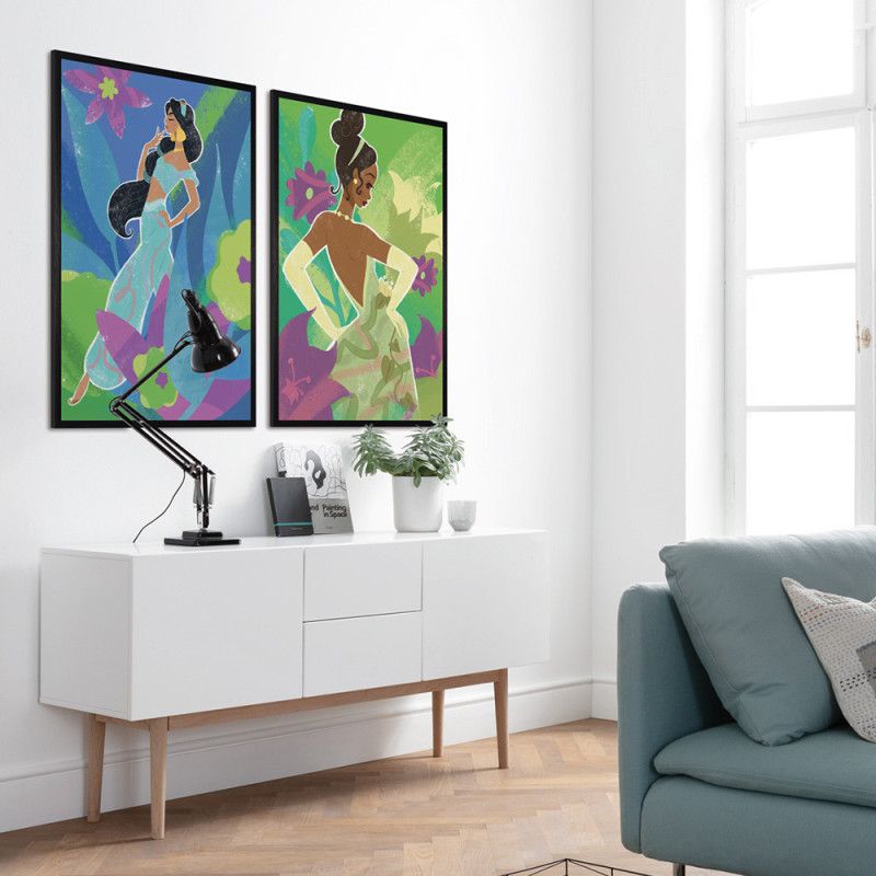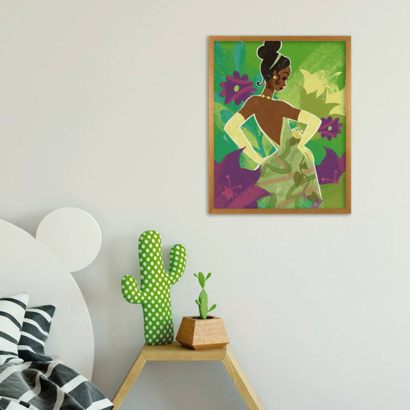 Apporte une ambiance douce et inspirante à ta déco avec ce poster de la princesse Tiana dans une belle palette de verts....