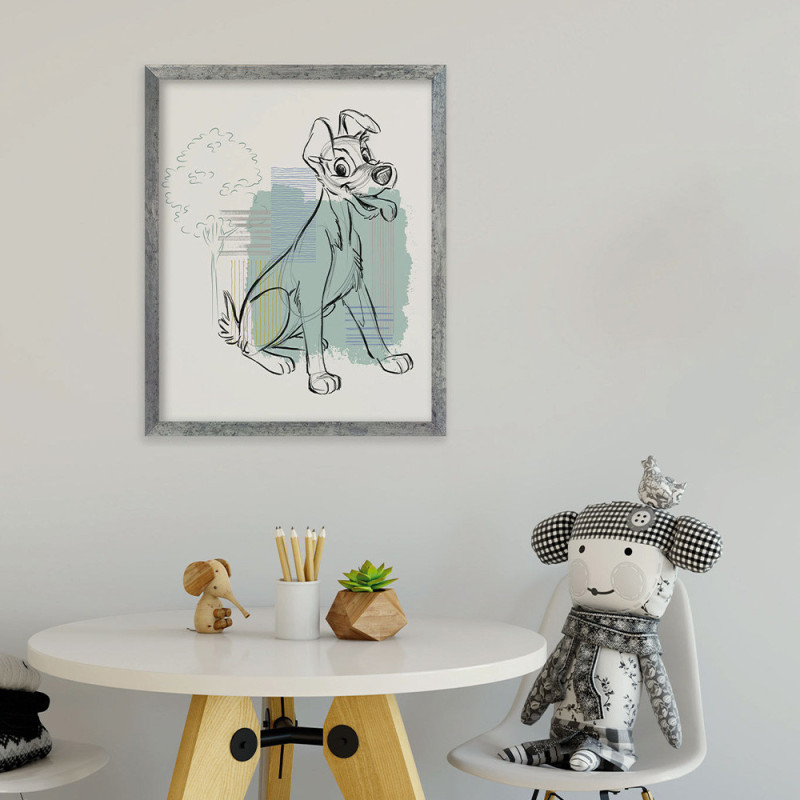 Apporte une ambiance douce et romantique à ta déco avec ce poster Belle et le Clochard aux teintes bleues apaisantes....