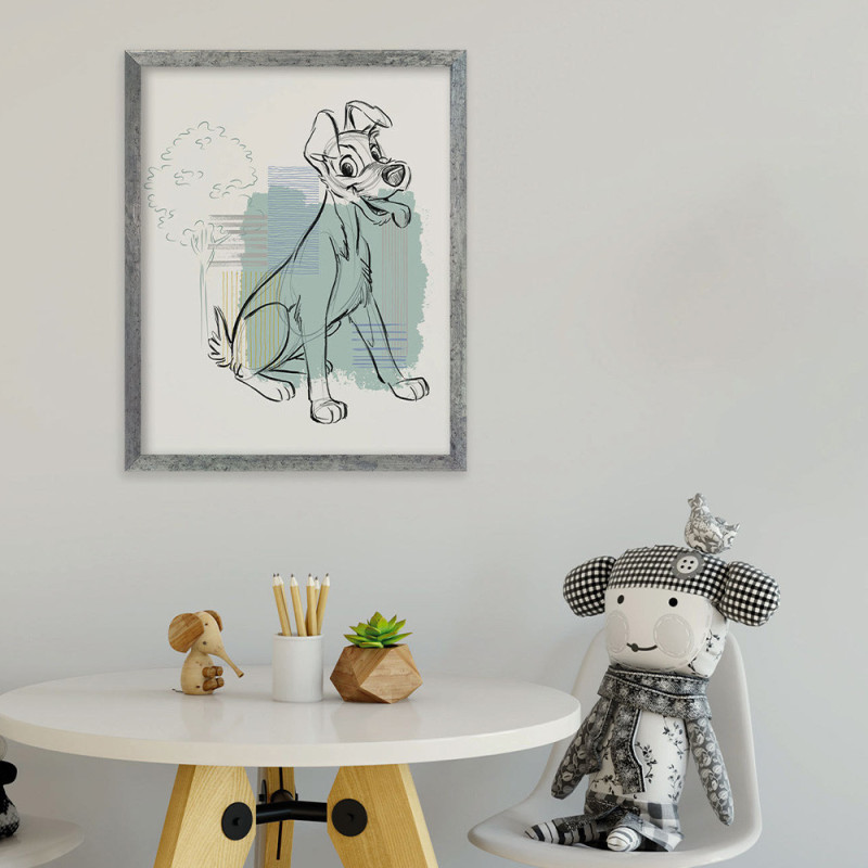 Ajoute une touche tendre à ta déco avec ce poster Belle et le Clochard aux teintes bleues douces. Son format 40 x 50 cm convient parfaitement pour décorer une chambre ou un petit espace avec charme.