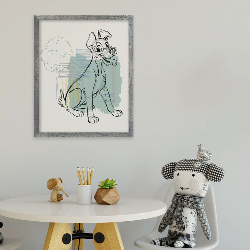 Apporte une note romantique à ta pièce avec ce poster grand format Belle et le Clochard aux nuances de bleu doux. Ce...