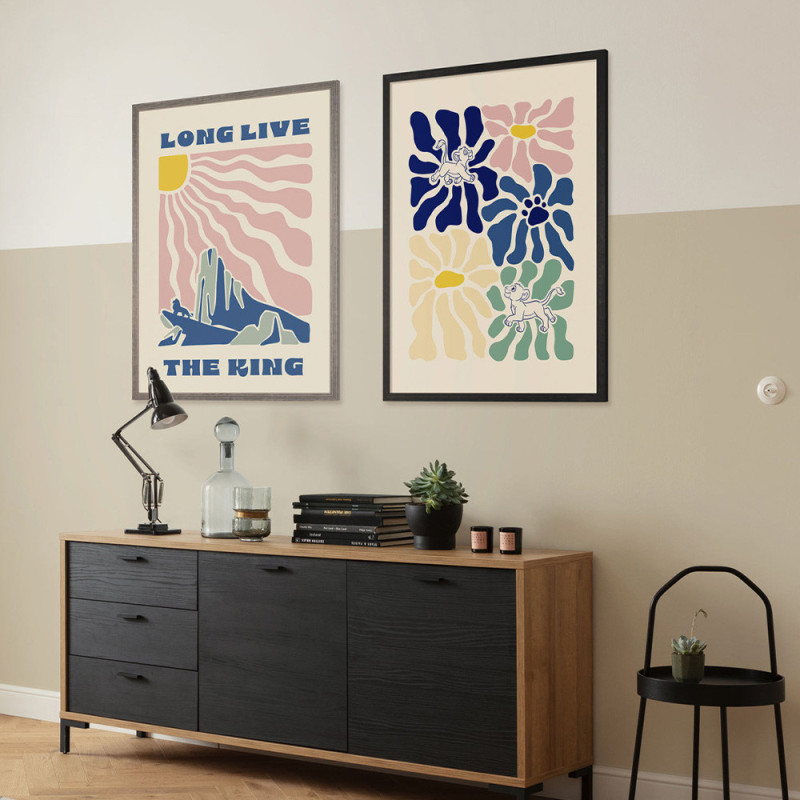 Besoin d'une décoration dans la chambre de votre enfant ? Apportez une ambiance vive et colorée à la chambre avec ce poster Le Roi Lion en grand format, illustrant Simba sur un rocher aux couleurs multicolores. Ce poster de 50 x 70 cm offre une présence forte sur le mur, parfait pour transformer un espace avec énergie et charme. Imprimé sur du papier intissé de qualité, il assure des couleurs éclatantes, une image nette, garantissant une longue durée. Idéal pour les amateurs du célèbre dessin animé, ce poster apporte une touche dynamique et pleine de vie à votre décoration intérieure.