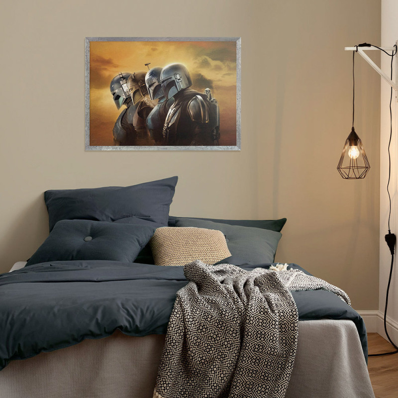Ce poster Mandalorian orange en grand format 50 x 70 cm est parfait pour décorer ton mur avec style. Il montre le célèbre héros de la série Star Wars dans une scène aux couleurs chaudes, avec un effet coucher de soleil qui attire le regard.