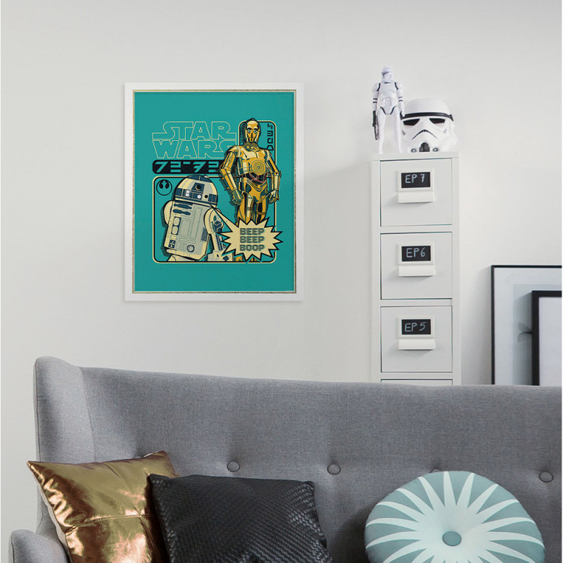 Apporte une touche geek et colorée à ta déco avec ce poster Beep Boop Star Wars bleu, format 40 x 50 cm. Ce visuel montre un robot emblématique de Star Wars dans des tons bleus vifs, parfait pour dynamiser la déco de ta pièce.