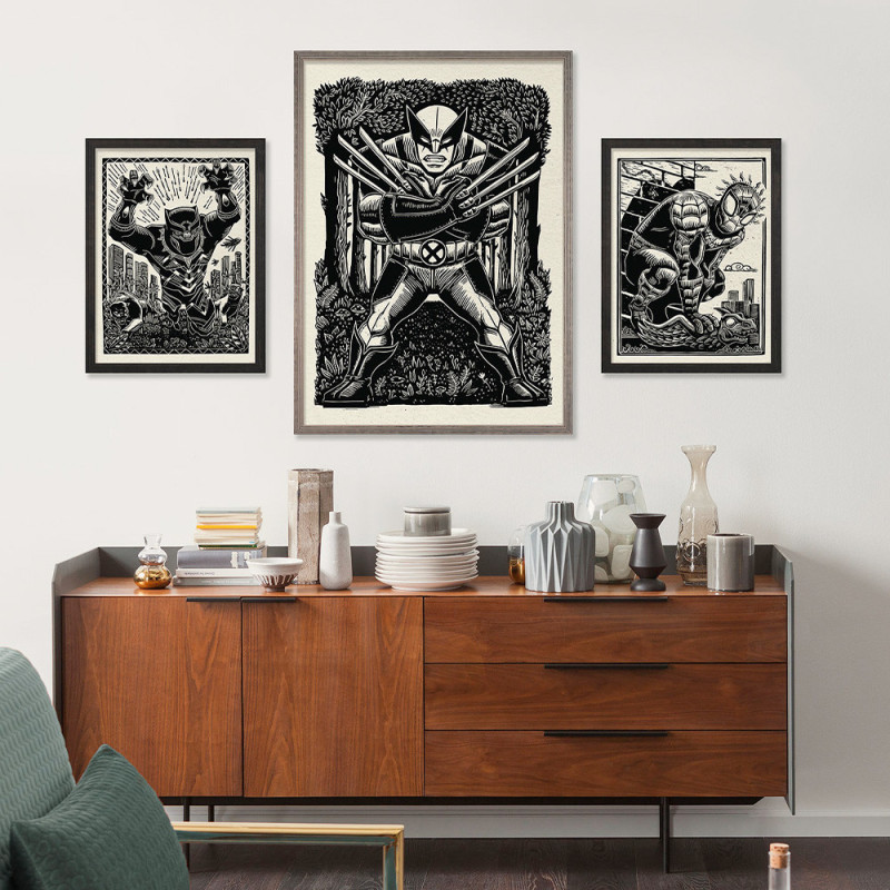 Apportez une touche moderne à votre décoration avec ce poster Black Panther noir et blanc, au format 40 x 50 cm. Le visuel met en valeur le héros Marvel dans un style graphique épuré, avec un contraste marqué entre noir et blanc pour un rendu contemporain. Imprimé sur un support intissé, ce poster s’adapte parfaitement à une chambre d’adolescent, un bureau ou un espace de loisirs. Une option élégante pour les amateurs de Black Panther qui cherchent une décoration discrète et stylée. Une décoration murale originale qui permet d’exprimer votre passion tout en ajoutant une touche déco en plus à votre intérieur !