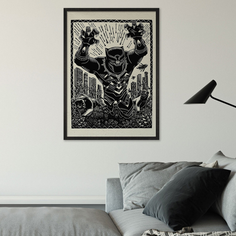 Affiche Black Panther noir et blanc 40 x 50 cm