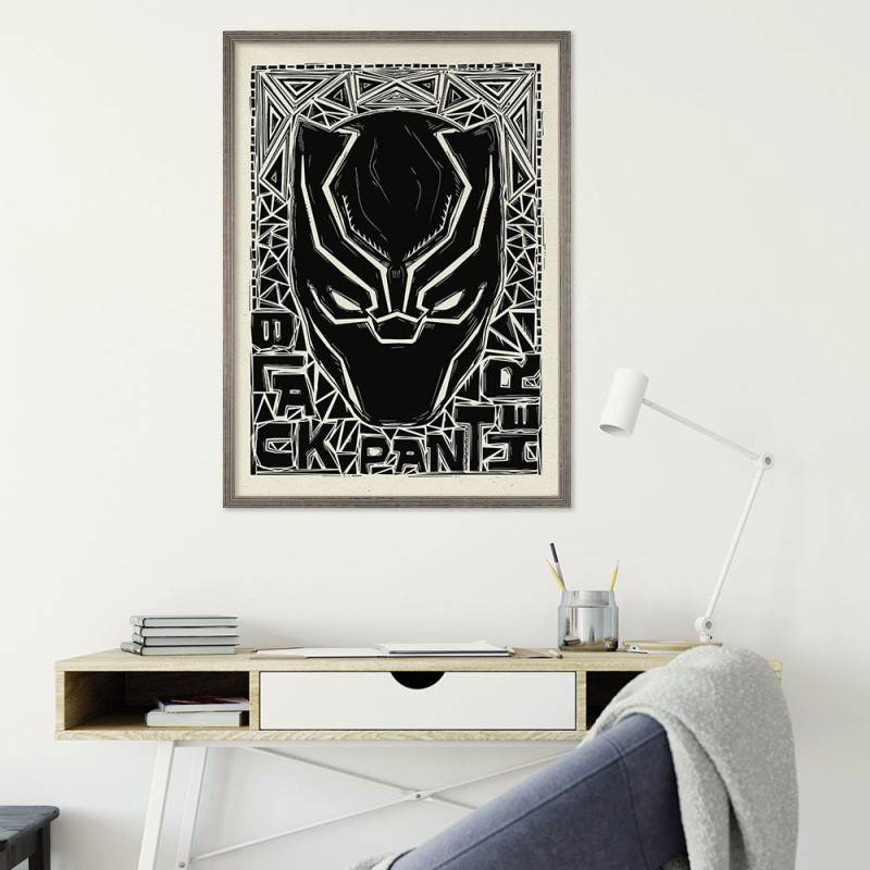 Affiche portrait Black Panther noir et blanc 30 x 40 cm