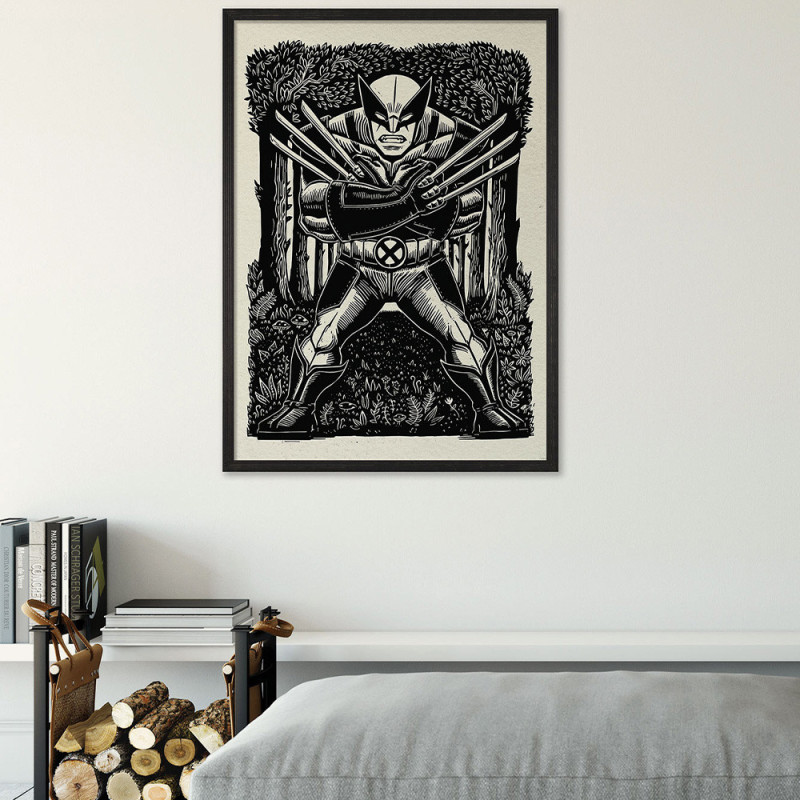 Affiche Wolverine noir et blanc 30 x 40 cm