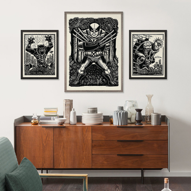 Affiche Wolverine noir et blanc 40 x 50 cm