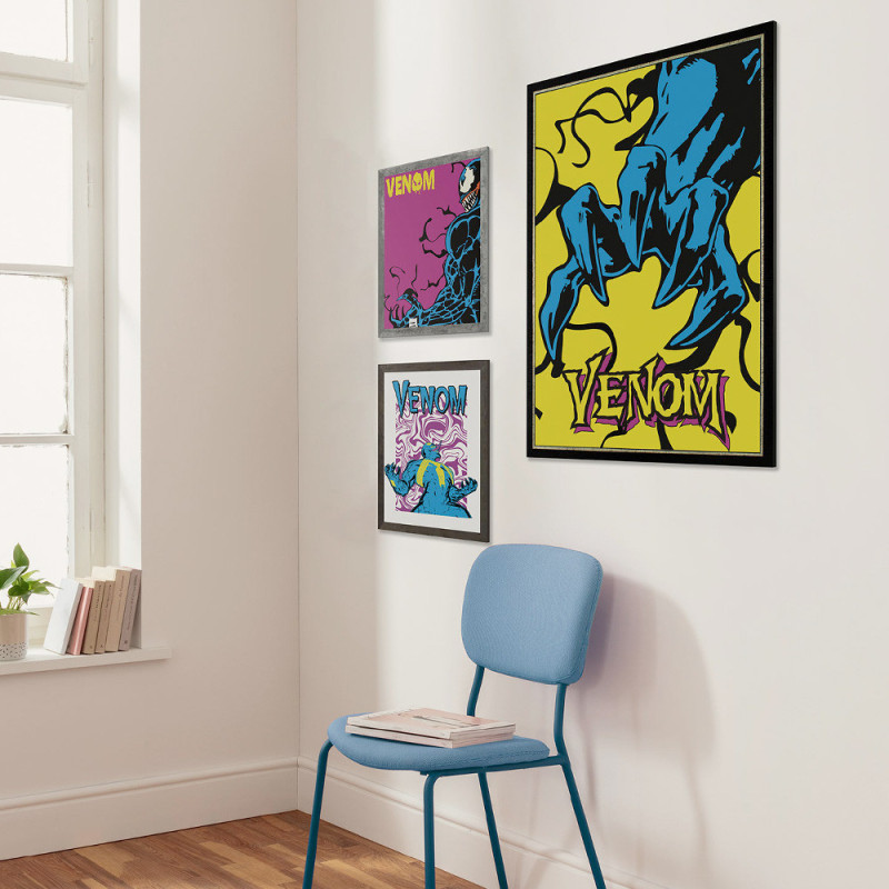 Apportez une touche unique à votre décoration avec ce poster Venom griffes bleues au format 30 x 40 cm. Le visuel met en avant les célèbres griffes du personnage dans des tons bleus intenses, créant un contraste saisissant sur un fond jaune. Imprimé sur un papier intissé, ce poster s’adapte parfaitement à une chambre, un bureau ou un espace dédié aux fans de l’univers Marvel. Une idée déco originale pour ceux qui apprécient les détails marquants et l’univers sombre de Venom.