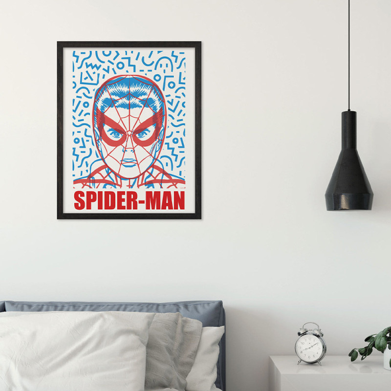 Apportez une touche moderne à votre décoration avec ce poster portrait Spider-Man bleu, au format 30 x 40 cm. Le design met en avant le visage du héros dans des nuances de bleu, offrant un rendu graphique et coloré. Imprimé sur un papier intissé, ce poster s’intègre parfaitement dans une chambre, un bureau ou un espace geek. Une décoration originale et stylée pour les fans de Spider-Man qui aiment les visuels Marvel !