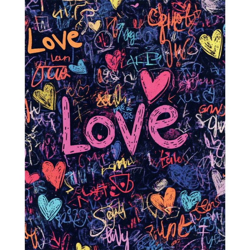 L'art urbain s'invite sur vos murs avec ce tableau street art aux couleurs éclatantes. Sur un fond bleu intense, le mot "Love" tagué en rose vif s'impose au centre, entouré d'une constellation de cœurs et d'inscriptions "love" graffées dans une palette multicolore. Une composition dynamique qui capture toute l'énergie et la spontanéité des fresques murales de rue.
