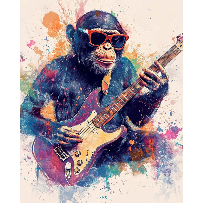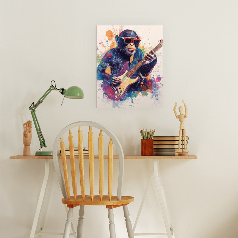 Tableau Chimpanzé Guitare 40x50 cm - Décoration Musicale Pop Art