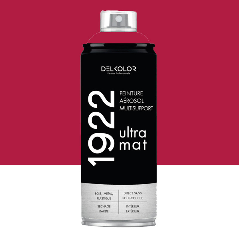 Peinture Delkolor 1922 spray aérosol ultra mat rouge framboise 400ML