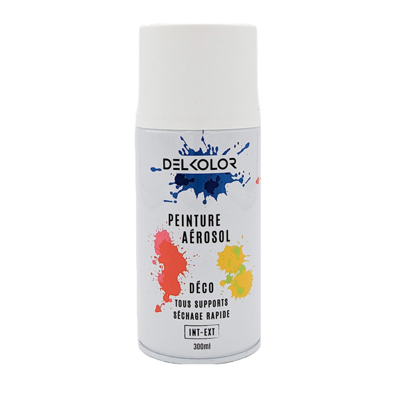 Bombe de peinture aérosol multi-supports DELKOLOR blanc satin 300ml