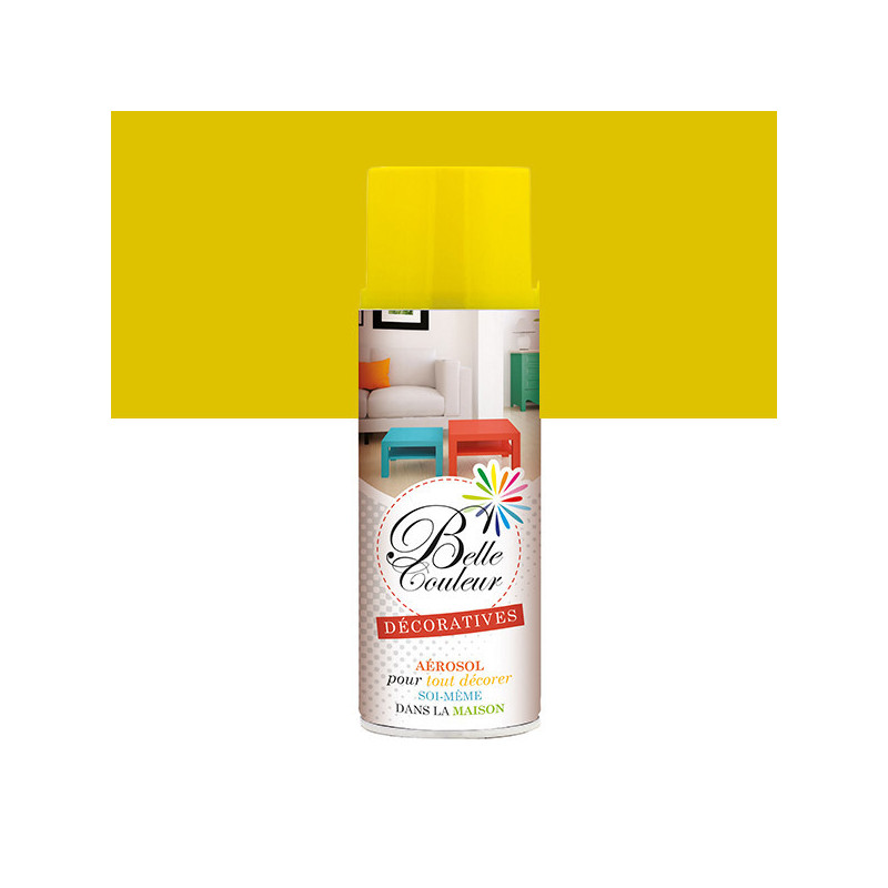 La peinture Belle couleur spray aérosol multi-supports de couleur jaune citron est à base de résine acrylique, est adaptée pour une utilisation à l'intérieur comme à l'extérieur, elle s'applique sur tous les types de support : métal, bois, PVC...