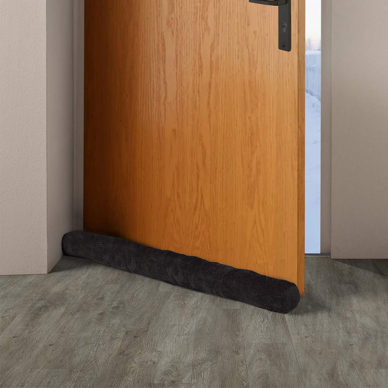 Boudin de porte isolant en velours côtelé noir brillant 80 cm