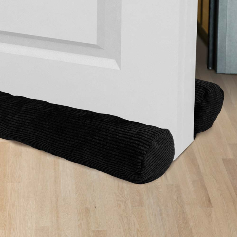 Double boudin de porte isolant en velours côtelé noir brillant 80 cm