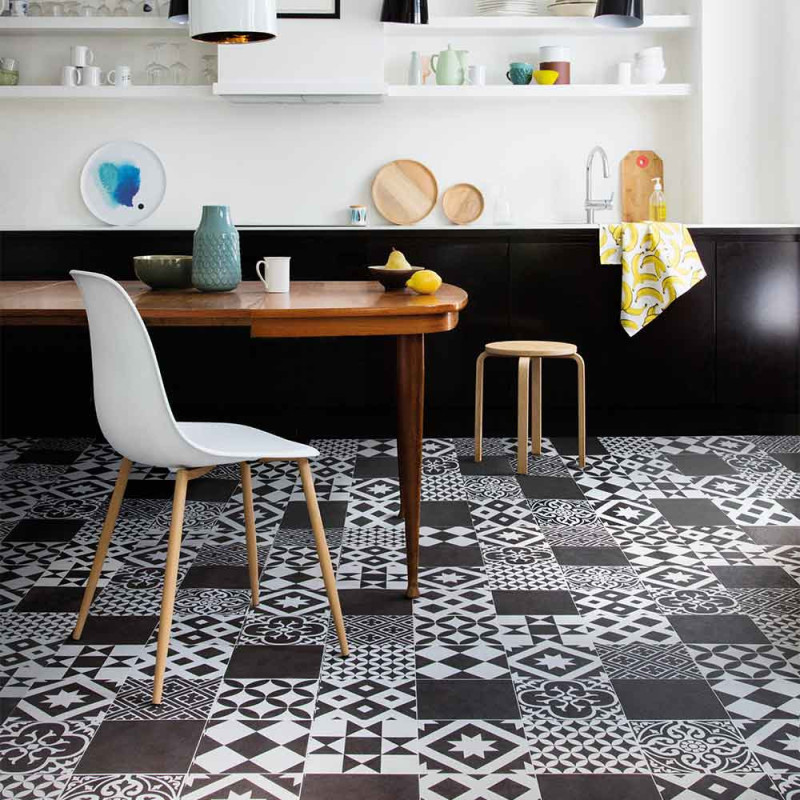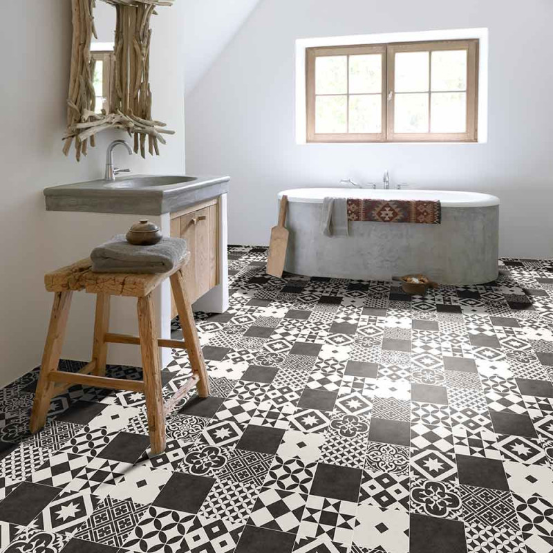 Ce revêtement de sol support feutre décor carreau ciment offre une excellente tenue dans le temps grâce à son épaisseur de 2.50 mm. Le support feutre ne nécessite pas une préparation préalable du sol. Il est possible de le poser sans colle. Sons amortis, sensation de douceur et confort à la marche inégalé. Son style completera parfaitement n'importe quelle pièce, quelle soit traditionnelle ou contemporraine. Dimension du carreau : 20 x 20 cm.