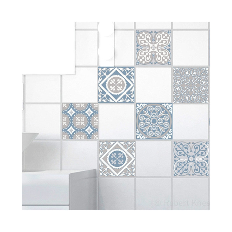 Décoration carrelage imitation carreaux de ciment bleu 10 x 10 cm