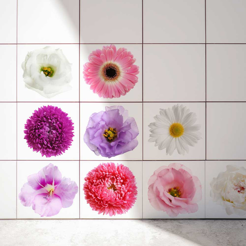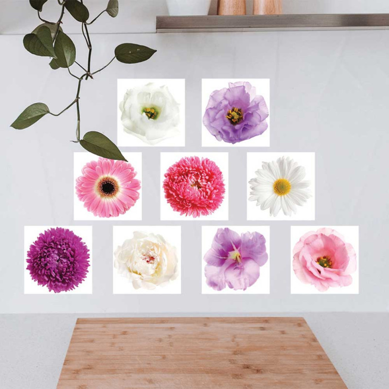 Sticker mural adhésif imitation carrelage à fleur 10 x 10 cm