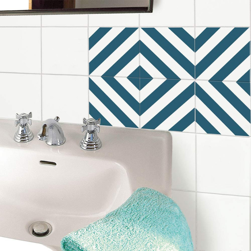 Sticker mural adhésif imitation carrelage à rayures bleu 15 x15 cm