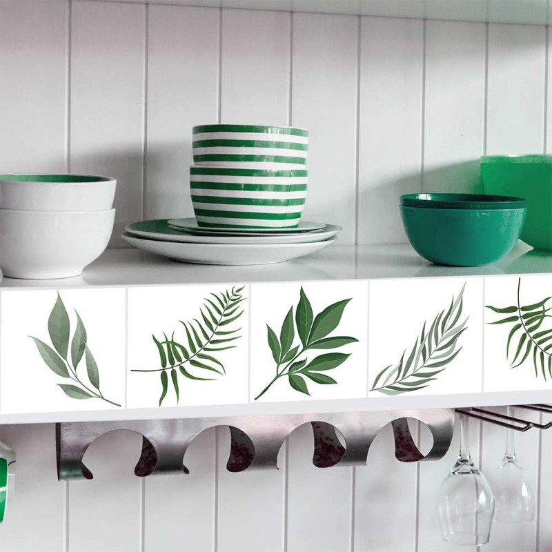 Pack de 9 stickers pour carrelage motif végétal 10 cm x 10 cm
