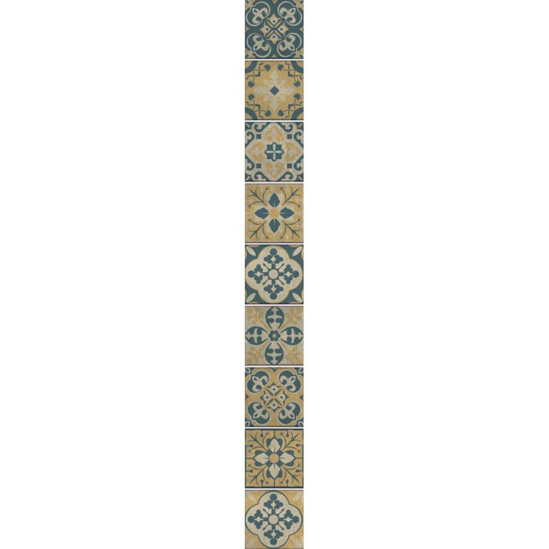 Pack de 9 stickers pour carrelage imitation carreaux ciment de couleurs jaune et bleu. Cela permet de recouvrir votre ancien carrelage...