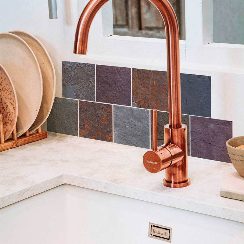 Pack de 9 stickers pour carrelage imitation pierre colorée. Cela permet de recouvrir votre ancien carrelage tout en apportant une touche de décoration à votre pièce. Facile d'entretien. Nettoyage avec une éponge humide à l’eau savonneuse.