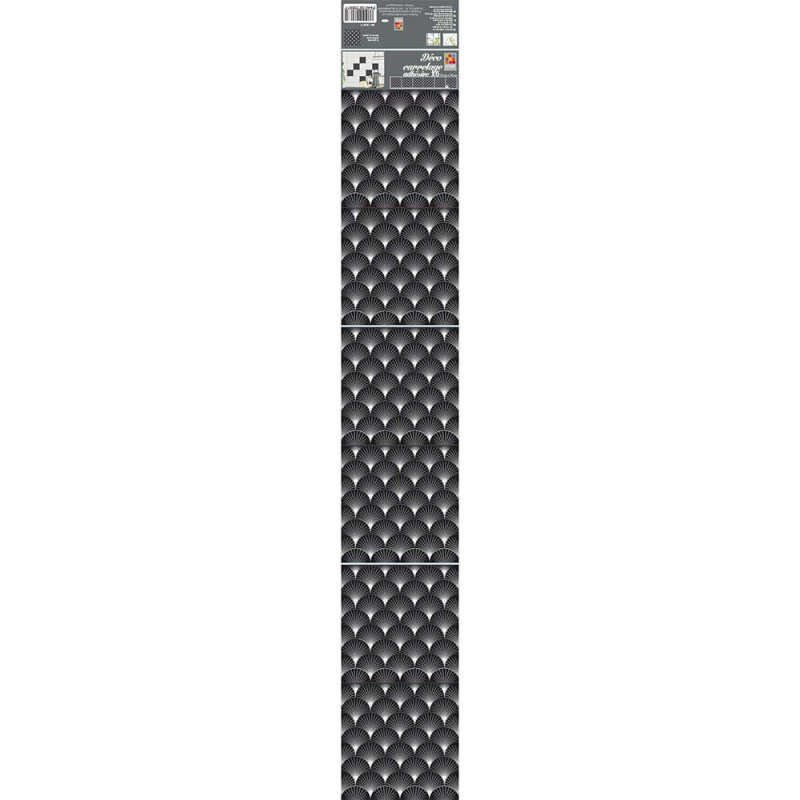 Pack de 6 stickers pour carrelage motif éventail noir et blanc 15 cm x 15 cm