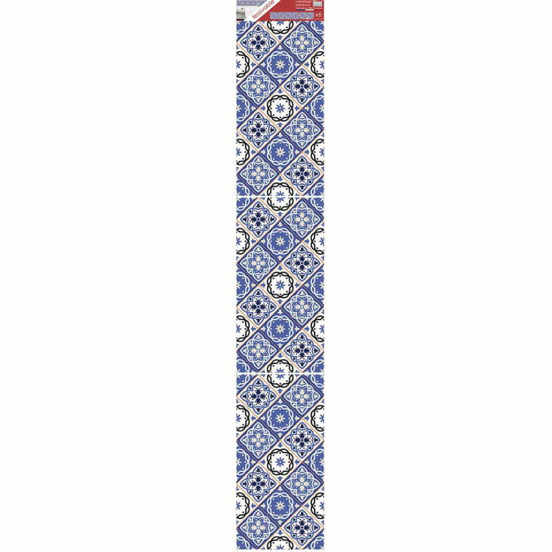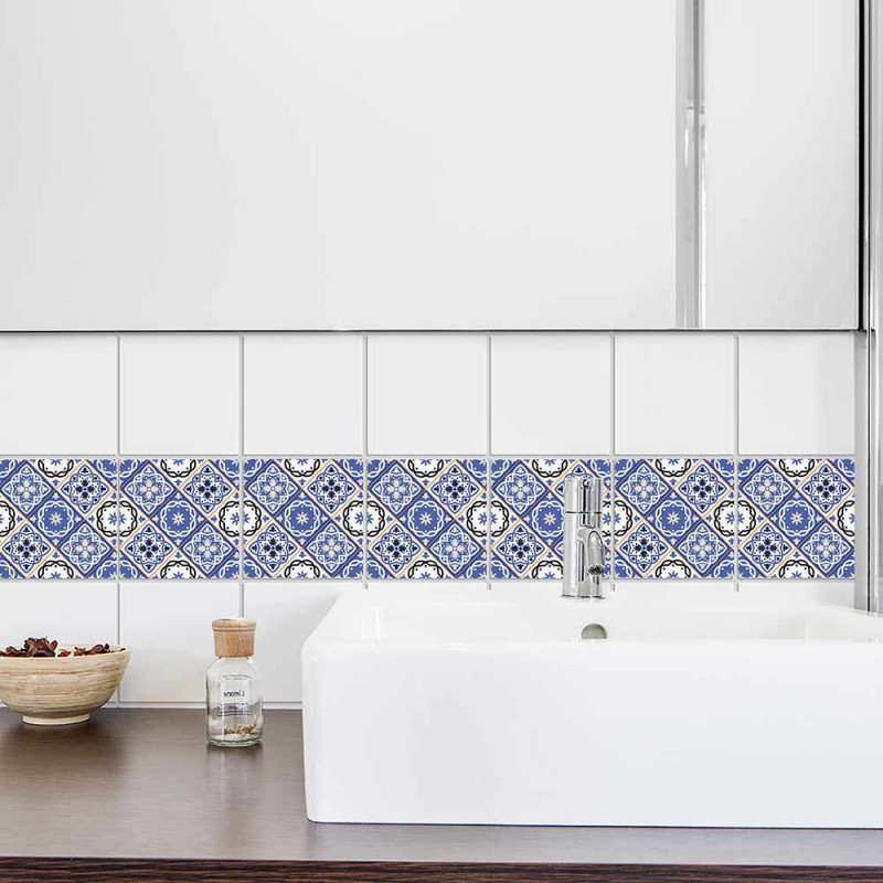 Pack de 6 stickers pour carrelage imitation carreaux ciment bleu 15 cm x 15 cm