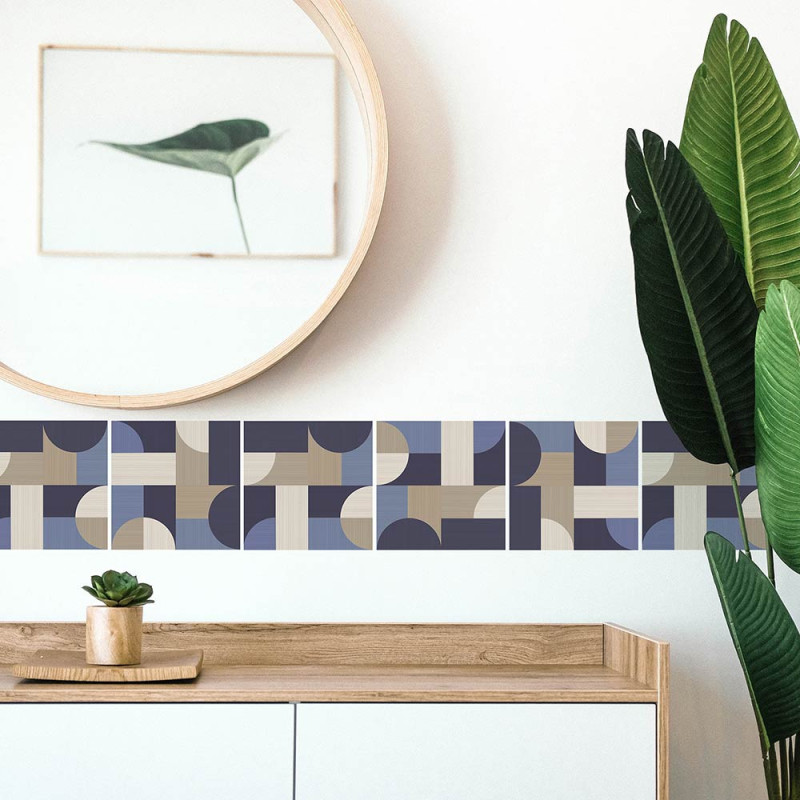 Pack de 6 stickers pour carrelage motif art déco bleu et beige. Cela permet de recouvrir votre ancien carrelage tout en apportant une...