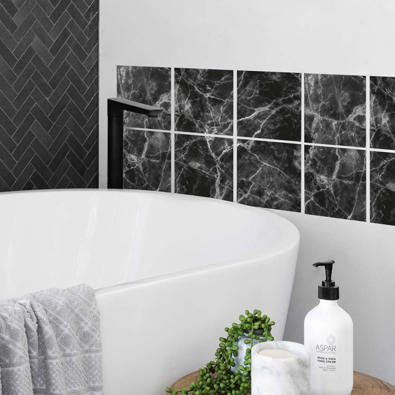 Pack de 6 stickers pour carrelage imitation marbre noir 15 cm x 15 cm