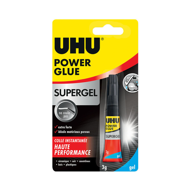 Optez pour la colle instantanée UHU ultra-rapide et ultra-forte. Une qualité idéale pour toutes les applications ! Sa formule est idéale pour coller de petites zones. Colle la plupart des supports solides, flexibles, ainsi que de nombreuses matières plastiques !