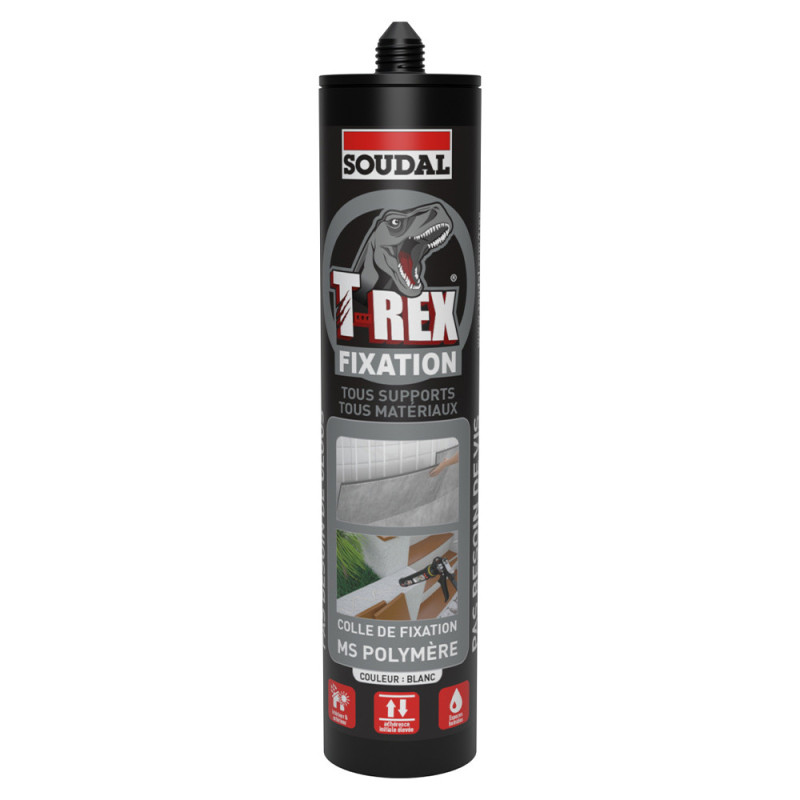Optez pour la Colle Fixation tous supports T-REX 485g. Idéale pour la pose de panneaux muraux en PVC, le collage de lambris PVC, bois, le collage de crédence, cornières, tasseaux... Convient parfaitement pour le collage horizontal et ou vertical de tous les matériaux comme la brique, la pierre, le béton, le métal, les plaques de plâtre, le liège, l’émail, le bois, le PVC, l’aluminium, le zinc, l’acier, les panneaux PVC, les dalles murales, les matériaux synthétiques sur des supports absorbants ou non absorbants tels que le ciment, le béton, l’aggloméré, la mosaïque, le carrelage, les plaques de plâtre, etc…