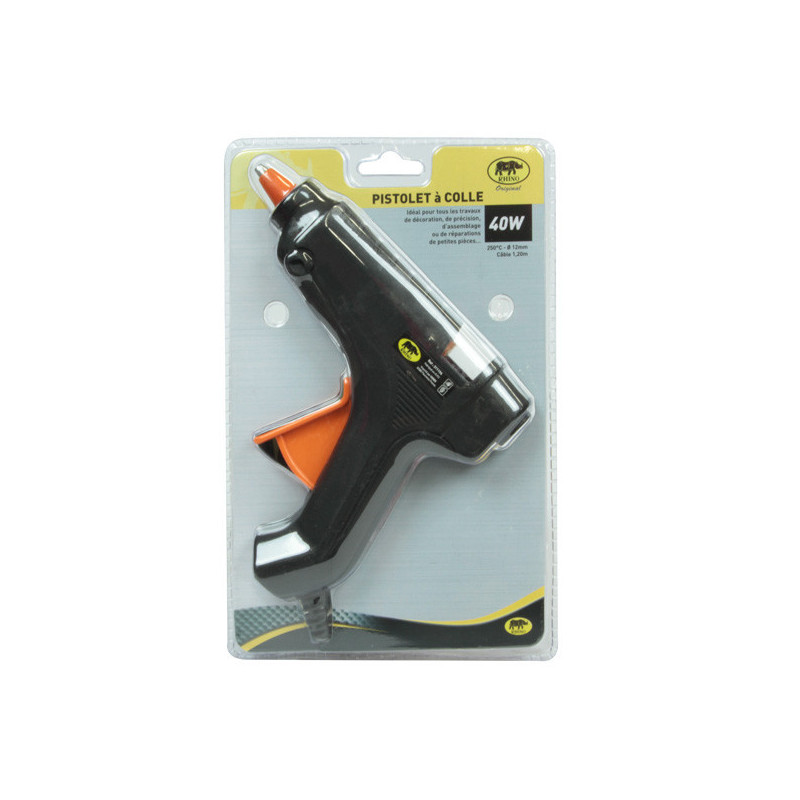 Pistolet colle pour les travaux de collage minutieux, de décoration ou de réparation. Puissance 40w, muni d'un cable secteur de 1m20