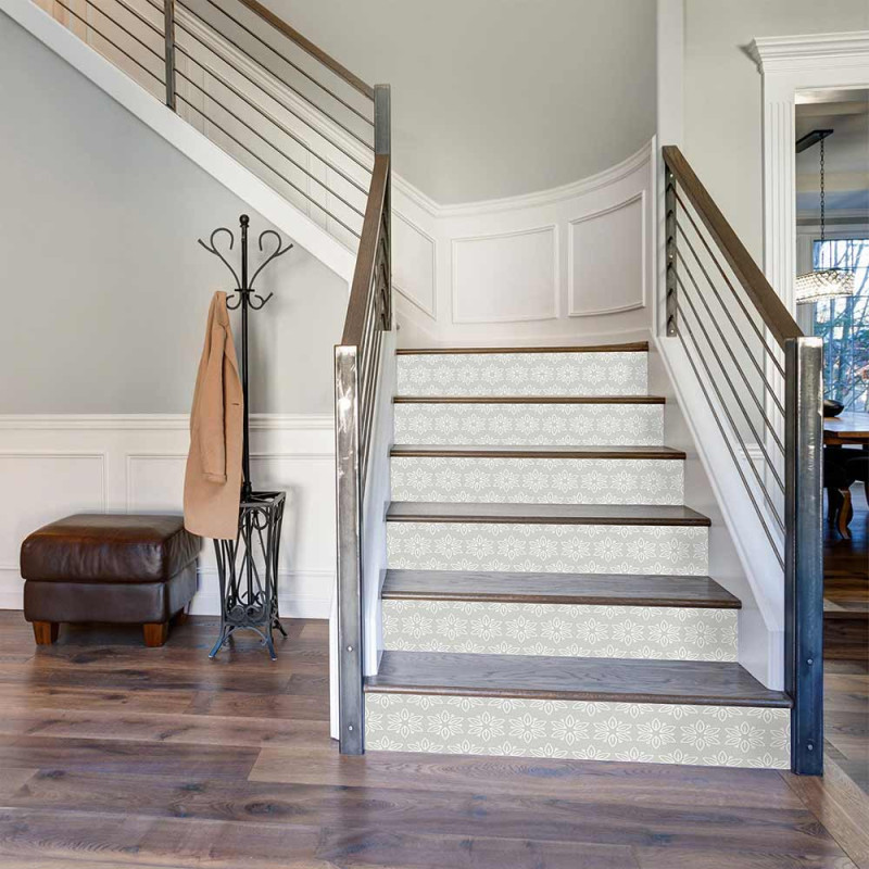 Découvrez nos contremarches adhésives au motif de feuillage gris clair, une façon élégante et facile d'embellir vos escaliers. Avec les...
