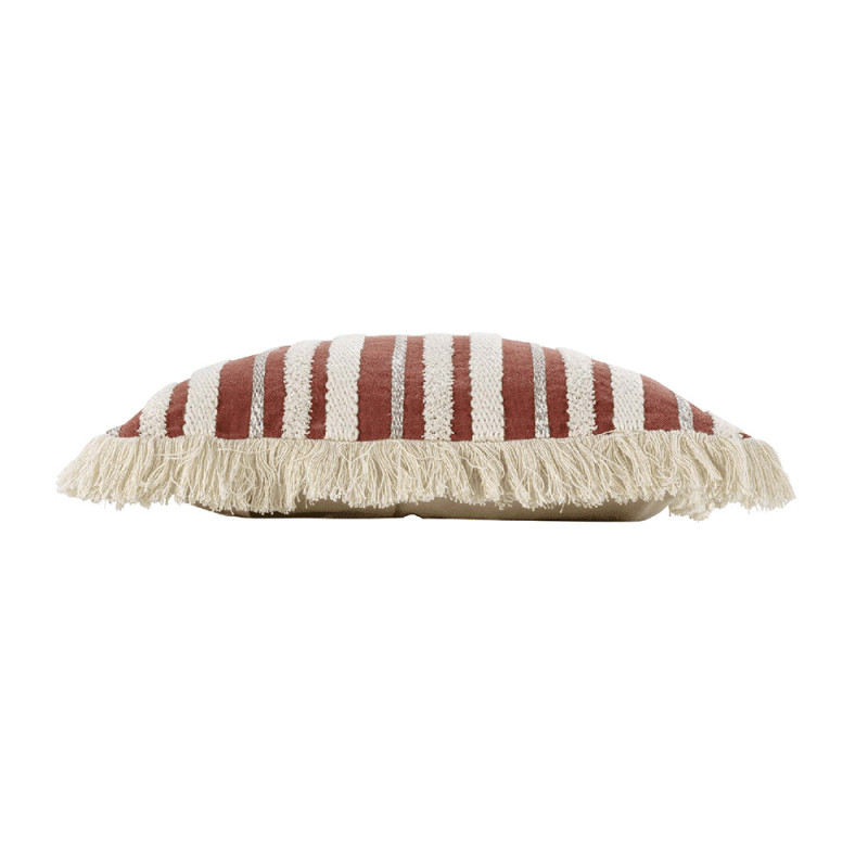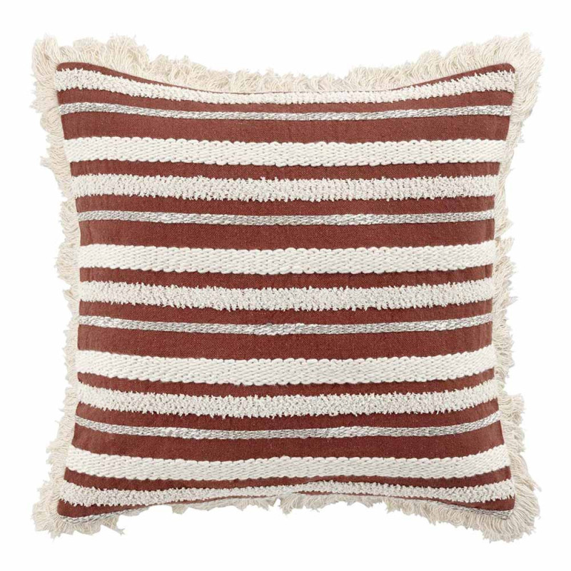 Coussin tissé à franges déhoussable terracotta 40x40 cm