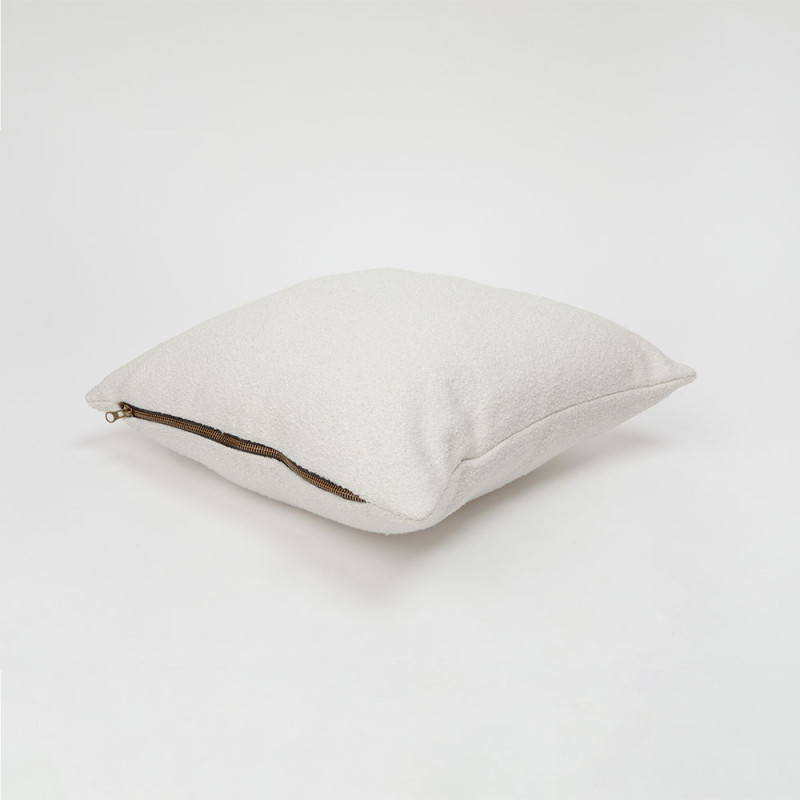 Coussin carré zippé moumoute à bouclette ivoire 45x45 cm