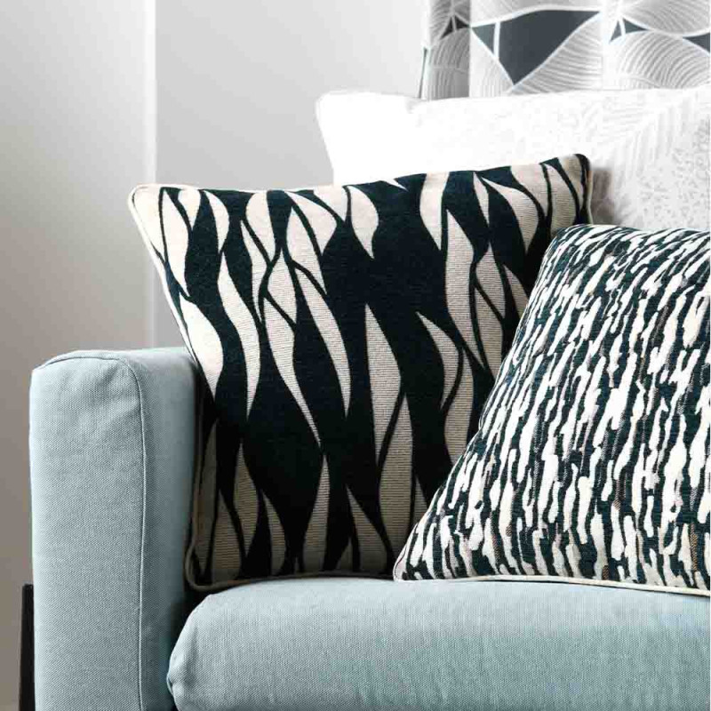 Mettez en valeur votre décoration avec le coussin zippé en velours jacquard bleu marine 45x45 cm, au design moderne et...