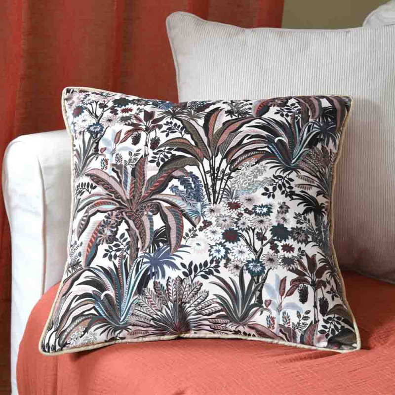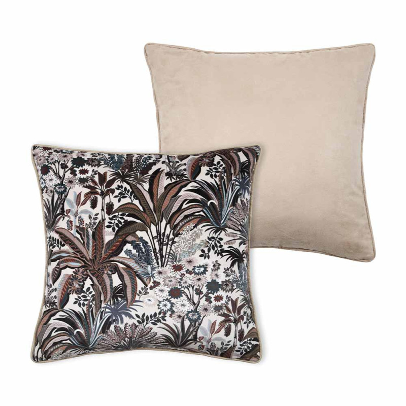 Coussin zippé velours végétal beige naturel 45x45 cm