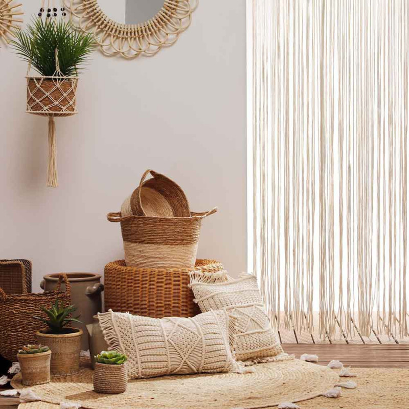 Apportez une touche bohème et chaleureuse à votre intérieur avec ce coussin déhoussable macramé en coton et franges. Son format 30x50 cm est idéal pour habiller un canapé, un fauteuil ou un lit avec élégance et confort. Confectionné en coton beige naturel, il arbore un délicat tissage en macramé, sublimé par de jolies franges pour une ambiance authentique et tendance. Pratique, sa housse amovible facilite l’entretien tout en garantant une longue durée de vie. Ce coussin est parfait pour apporter une note bohème chic et cosy à votre décoration, tout en offrant douceur et raffinement à votre espace de vie.