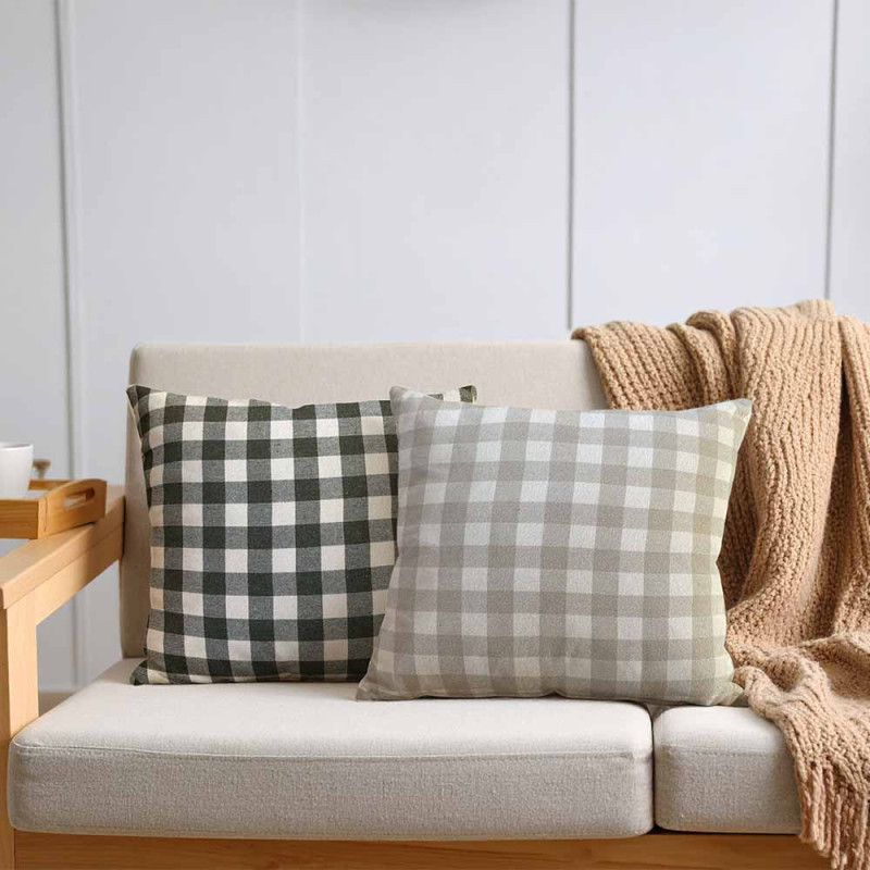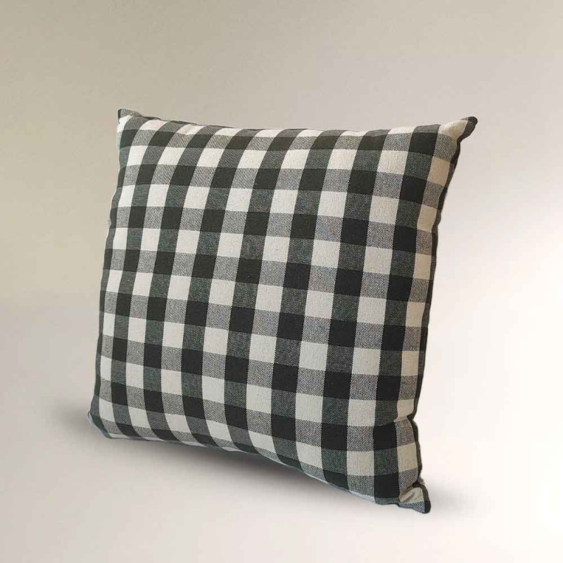 Coussin tissé vichy déhoussable et zippé kaki 45x45 cm