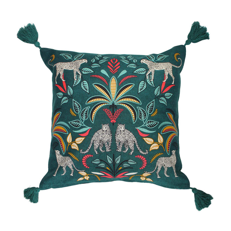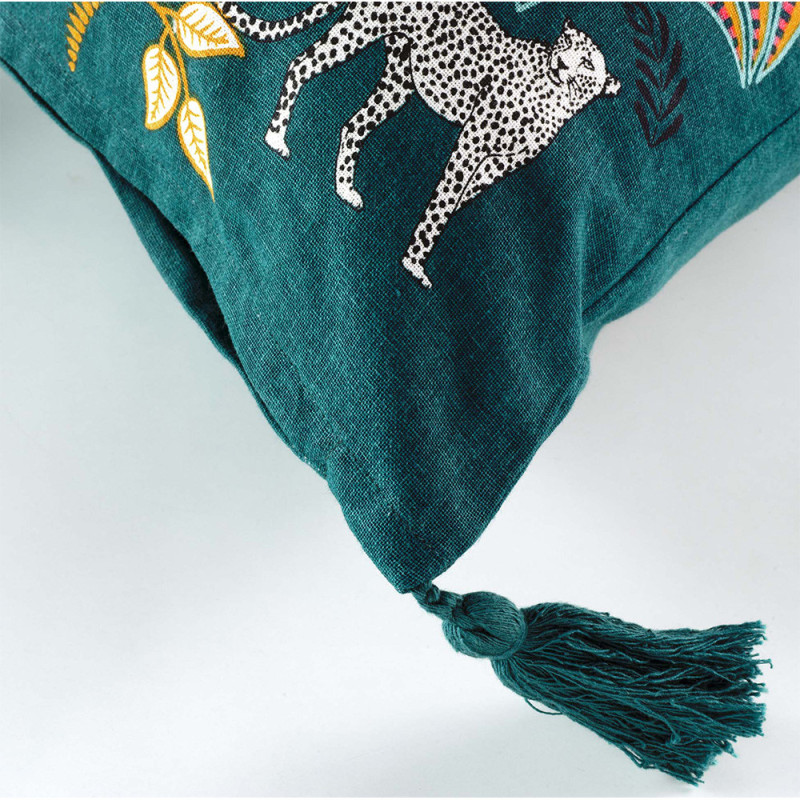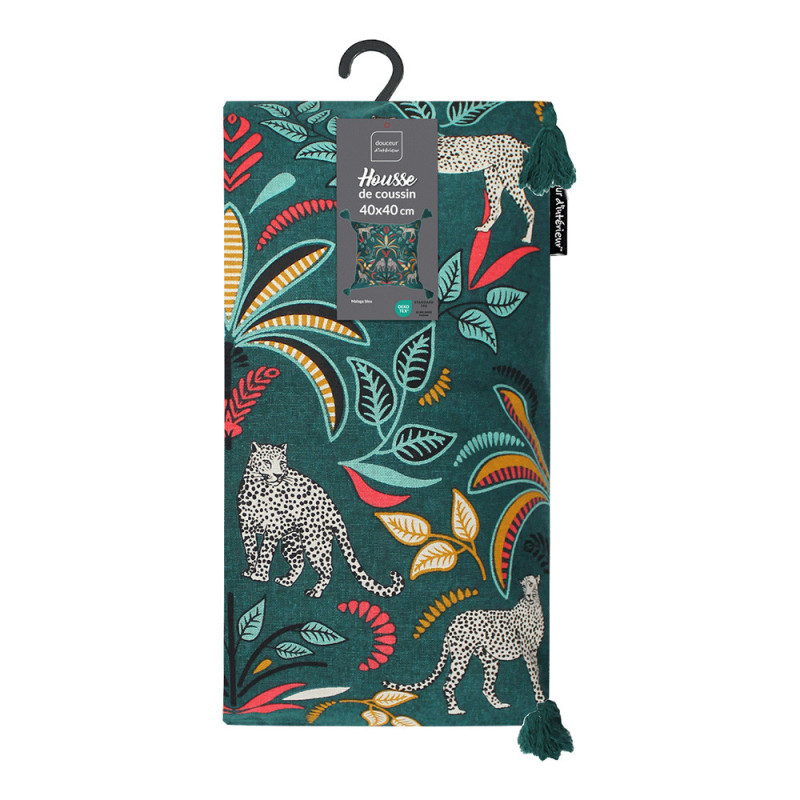 Housse de coussin jungle bleu canard 40x40 cm