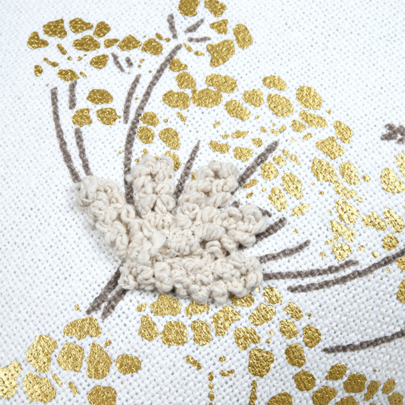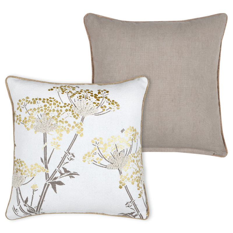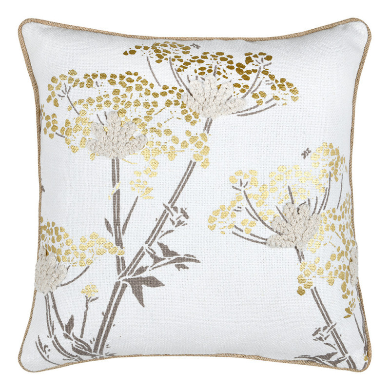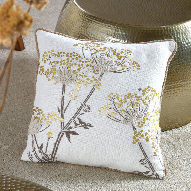 Coussin imprimé floral or et taupe 40x40 cm, un